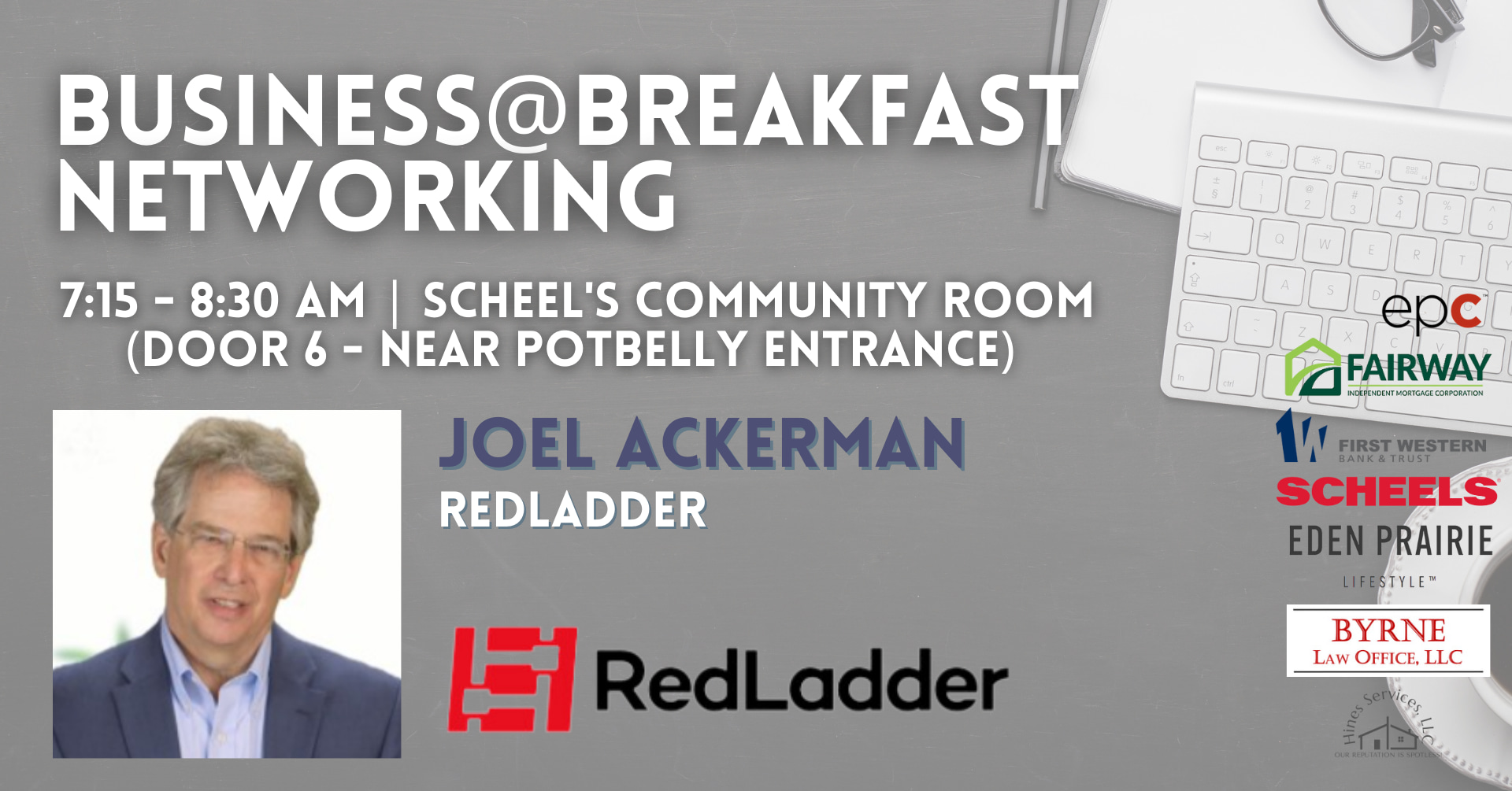Event Sponsors: Fairway Independent Mortgage Company- Dominic Des Marais, First Western Bank & Trust, Byrne Law Office, Eden Prairie Lifestyle, Hines Cleaning, and Scheels