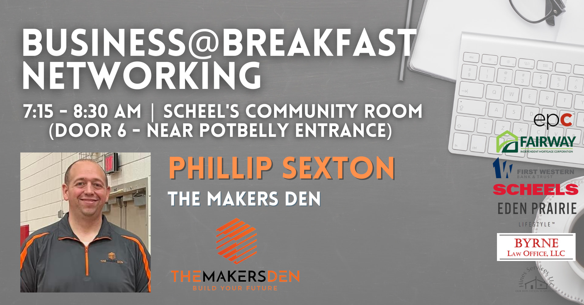 Event Sponsors: Fairway Independent Mortgage Company- Dominic Des Marais, First Western Bank & Trust, Byrne Law Office, Eden Prairie Lifestyle, Hines Cleaning, and Scheels