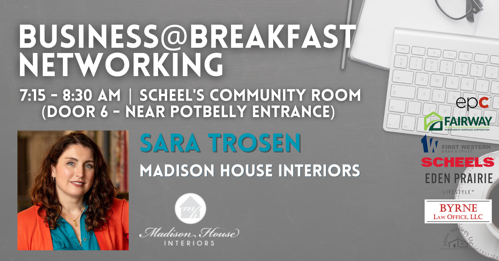 Event Sponsors: Fairway Independent Mortgage Company- Dominic Des Marais, First Western Bank & Trust, Byrne Law Office, Eden Prairie Lifestyle, Hines Cleaning, and Scheels