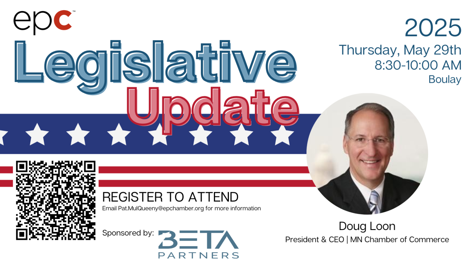 Join us for an exclusive legislative update featuring Doug Loon, President of the Minnesota Chamber of Commerce. Attendees will learn what was passed in the MN Legislative session this year, what that means to businesses and how you should prepare. Don’t miss this opportunity to stay informed and engaged in Minnesota’s evolving legislative landscape - a full breakfast is provided. Additional Sponsors include Xcel Energy and C.H. Robinson.