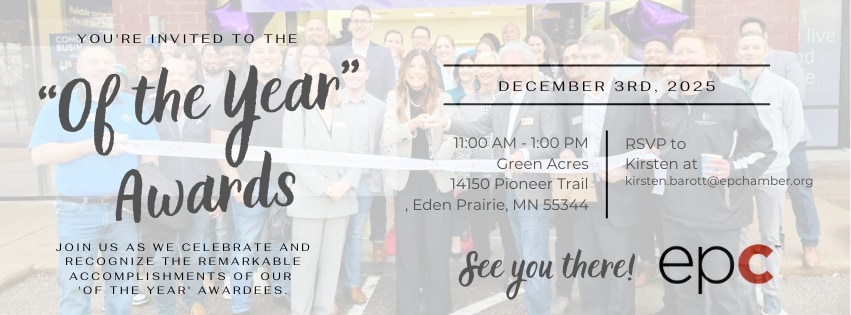 The Eden Prairie Chamber of Commerce is excited to announce the opening of nominations for our annual "Of the Year" Awards! This is your chance to recognize the outstanding contributions and achievements of our members who have made a significant impact in our community and business environment. We encourage you to participate in this celebration of excellence by nominating yourself, nominating a deserving peer, or encouraging someone you know to nominate themselves.