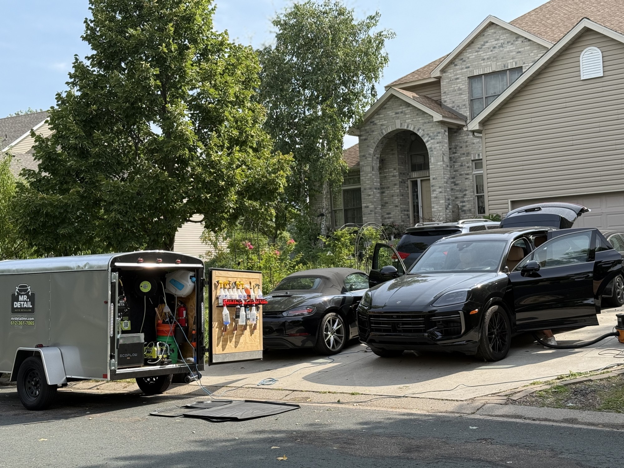 He gathered supplies, loaded them into his SUV, and started out by detailing cars for friends and family. Just eight months later, Mr. Detail had grown from a one-man operation into a business with three part-time contractors, professional-grade equipment, and a fully equipped trailer that provides water, power, and everything needed for top-notch service—right in the customer’s driveway.