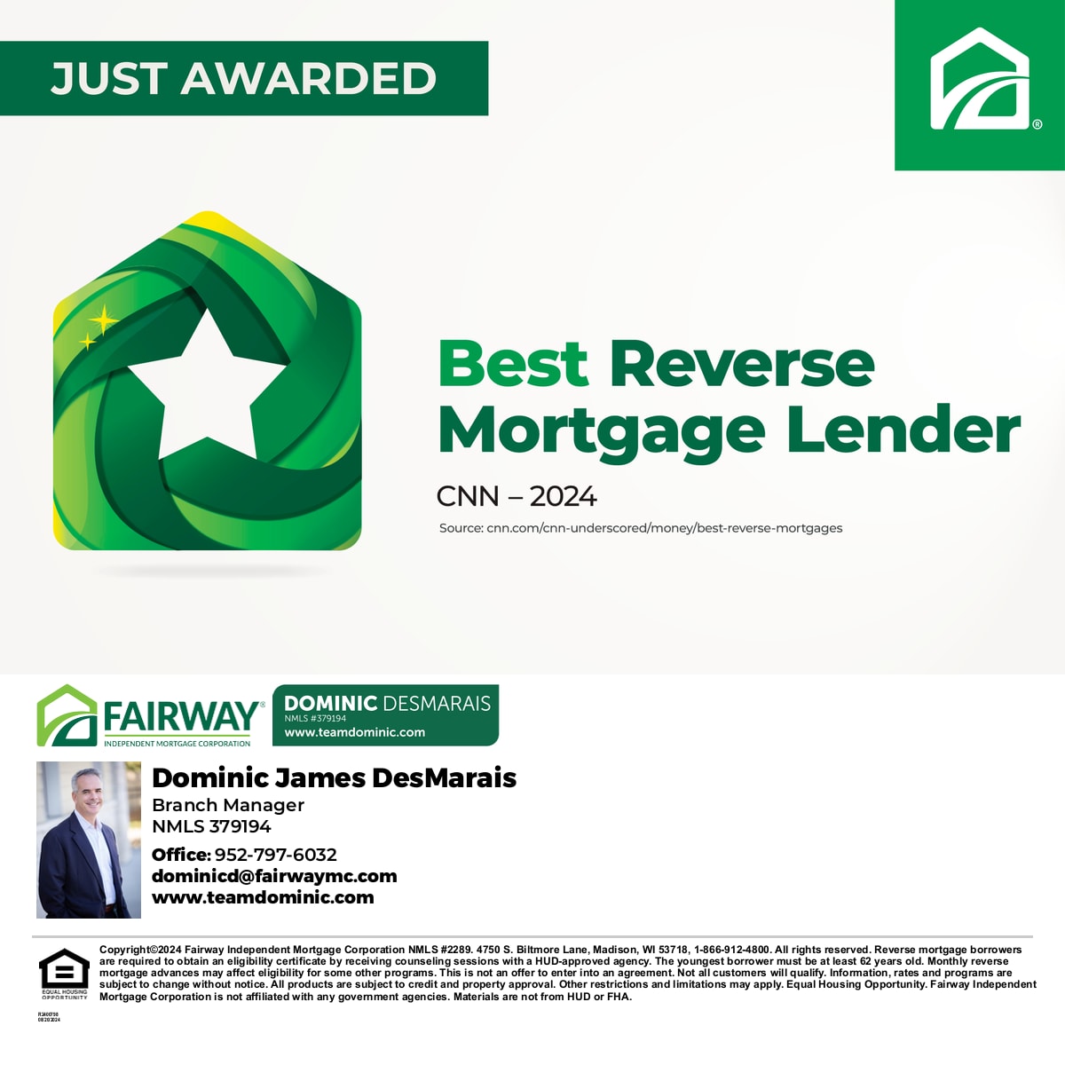 For more information or to explore how a HECM might benefit you or a loved one, contact Dominic at Fairway Independent Mortgage Corporation.
