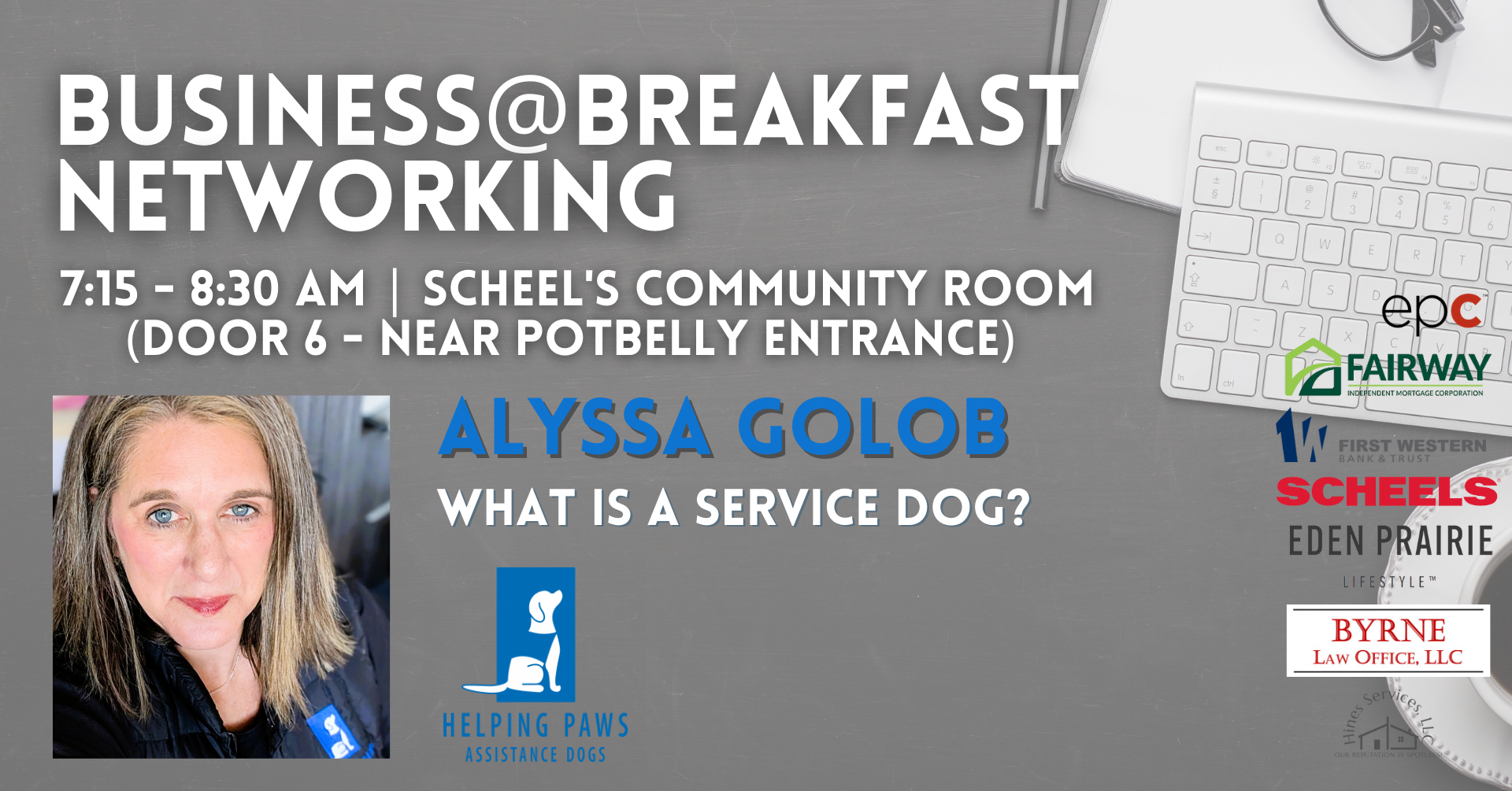 Event Sponsors: Fairway Independent Mortgage Company- Dominic Des Marais, First Western Bank & Trust, Byrne Law Office, Eden Prairie Lifestyle, Hines Cleaning, and Scheels