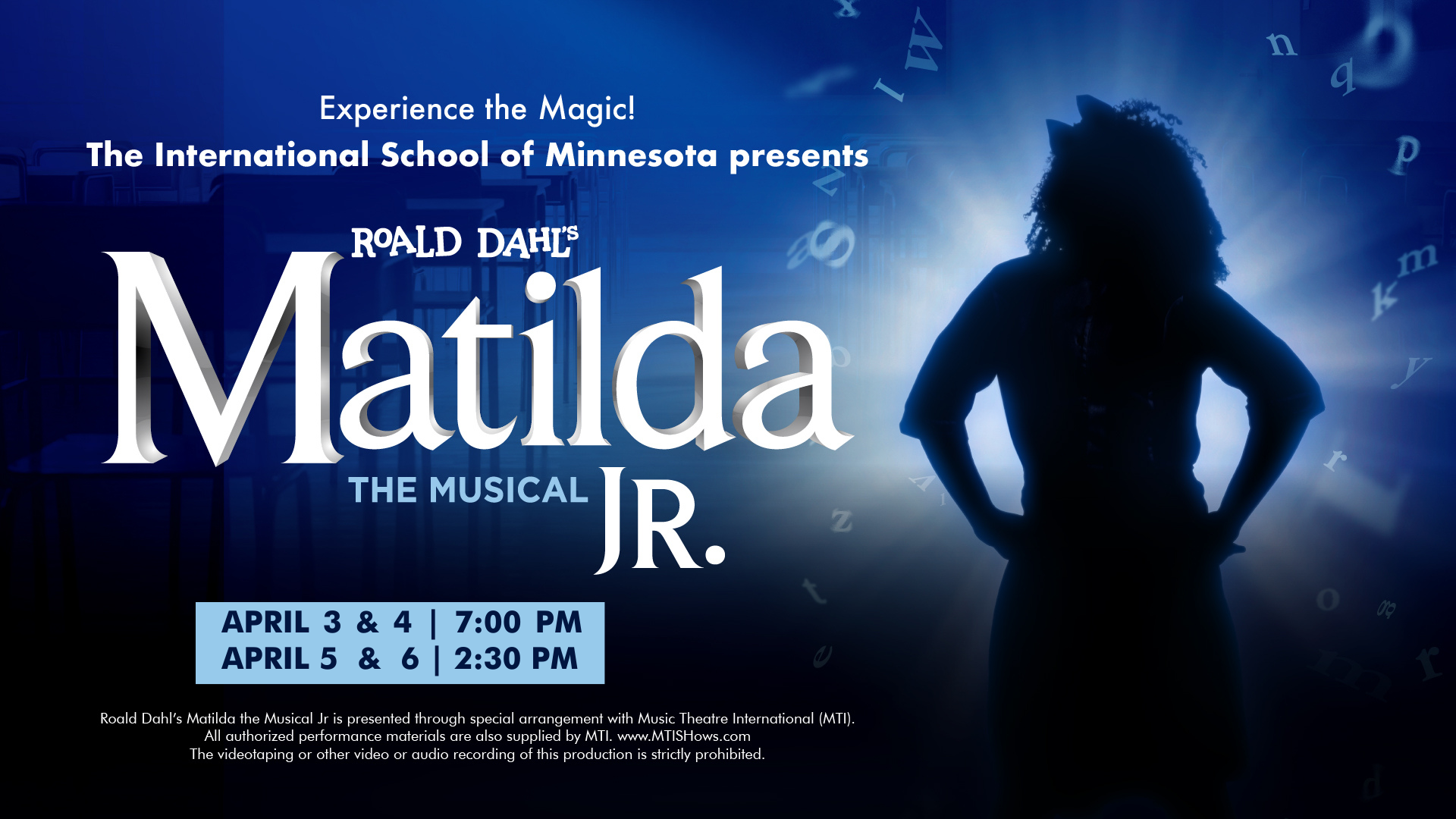 The International School of Minnesota proudly presents Matilda the Musical JR., a captivating tale of bravery, wit, and a touch of magic! Come and support our talented students as they bring this beloved story to life with memorable music, imaginative storytelling, and plenty of laughs. Bring your family and friends to experience the extraordinary world of Matilda and discover that sometimes, even if you're little, you can do a lot!