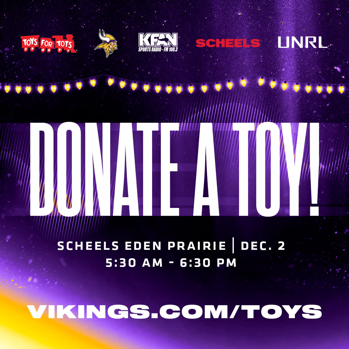 Kick off the season of giving at SCHEELS with the Minnesota Vikings, KFAN, and UNRL