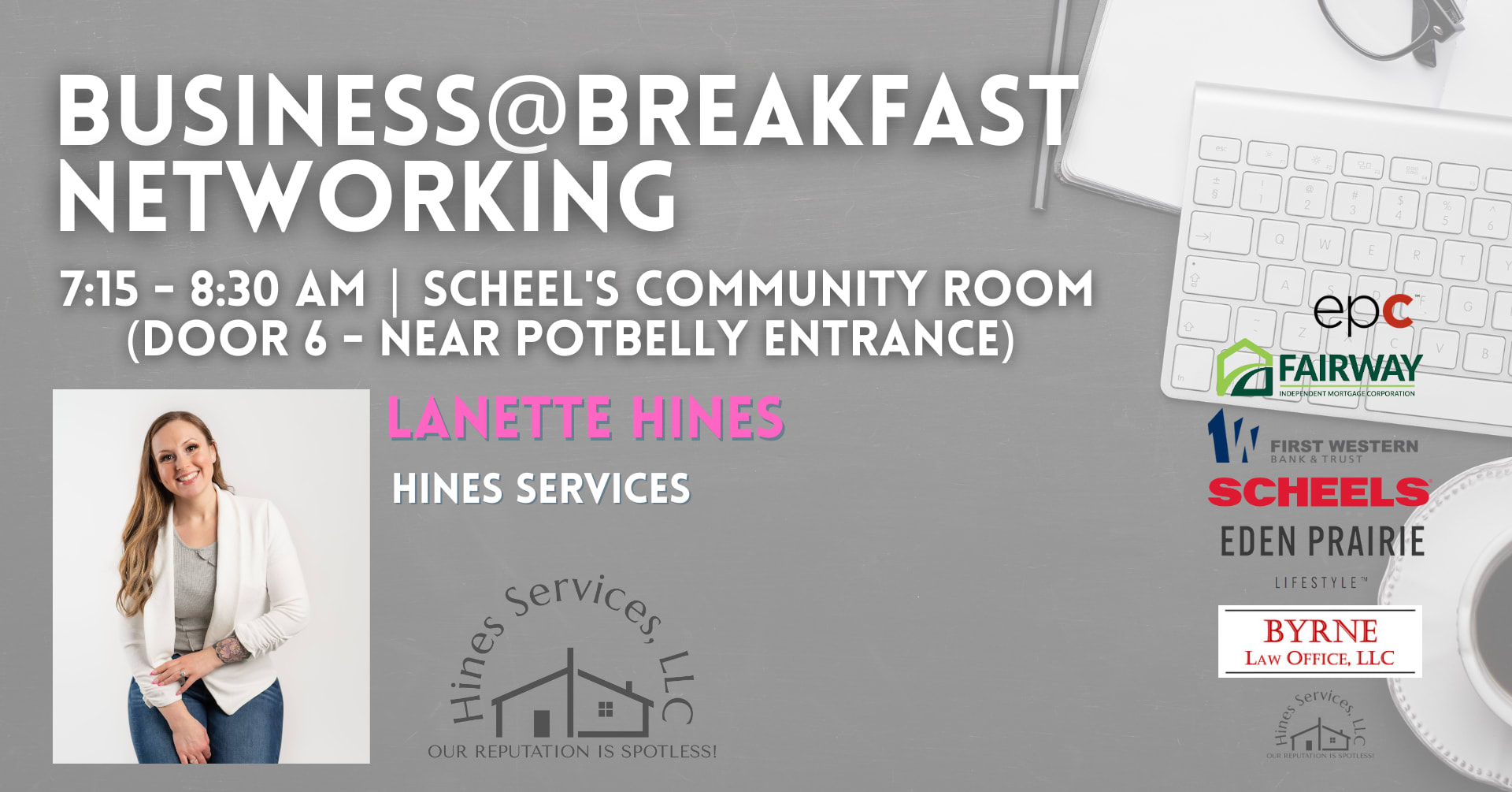 Event Sponsors: Fairway Independent Mortgage Company- Dominic Des Marais, First Western Bank & Trust, Byrne Law Office, Eden Prairie Lifestyle, Hines Cleaning, and Scheels