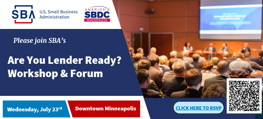This event will bring together some of the top SBA local lenders (US Bank, Platinum Bank, BankVista, MBFC, WomenVenture, NDC, CFR USA, MEDA) and business advisors (SBDC, SCORE) under one roof for a full day of workshops, lender panel, expert insights, and invaluable networking opportunities.