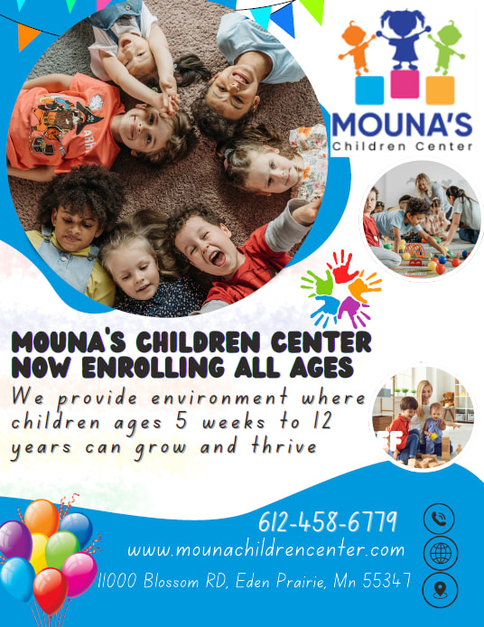 At Mouna’s Children Center, we provide a warm, nurturing, and stimulating environment where children ages 5 weeks to 12 years can grow, play, and thrive. With a focus on play-based learning, our program encourages creativity, independence, and a lifelong love for discovery — all in a safe and bilingual setting.